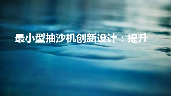 最小型抽沙機創新設計:提升效率的抽沙設備如何改變產業格局?